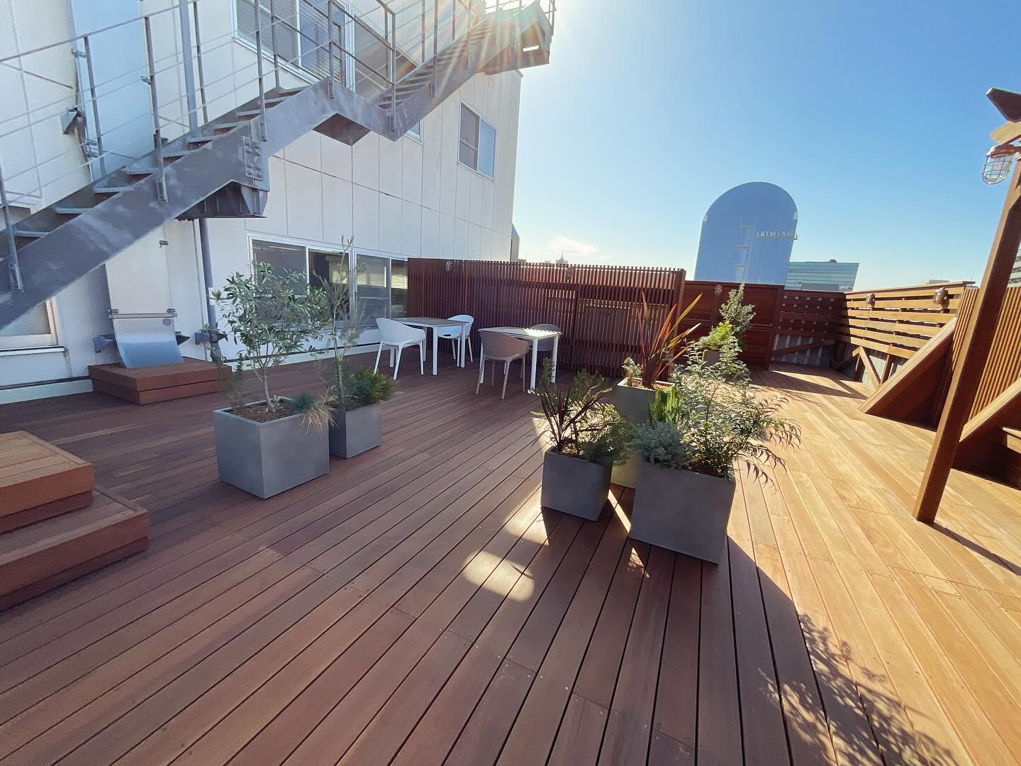 オフィスビルの屋上にウッドテラスお客様の高田馬場オフィスビル。ウッドテラス竣工確認に伺いました。みなさんに、活用されてる様で良かったです。ありがとうございました。 ShareRelease Date2024/5/12