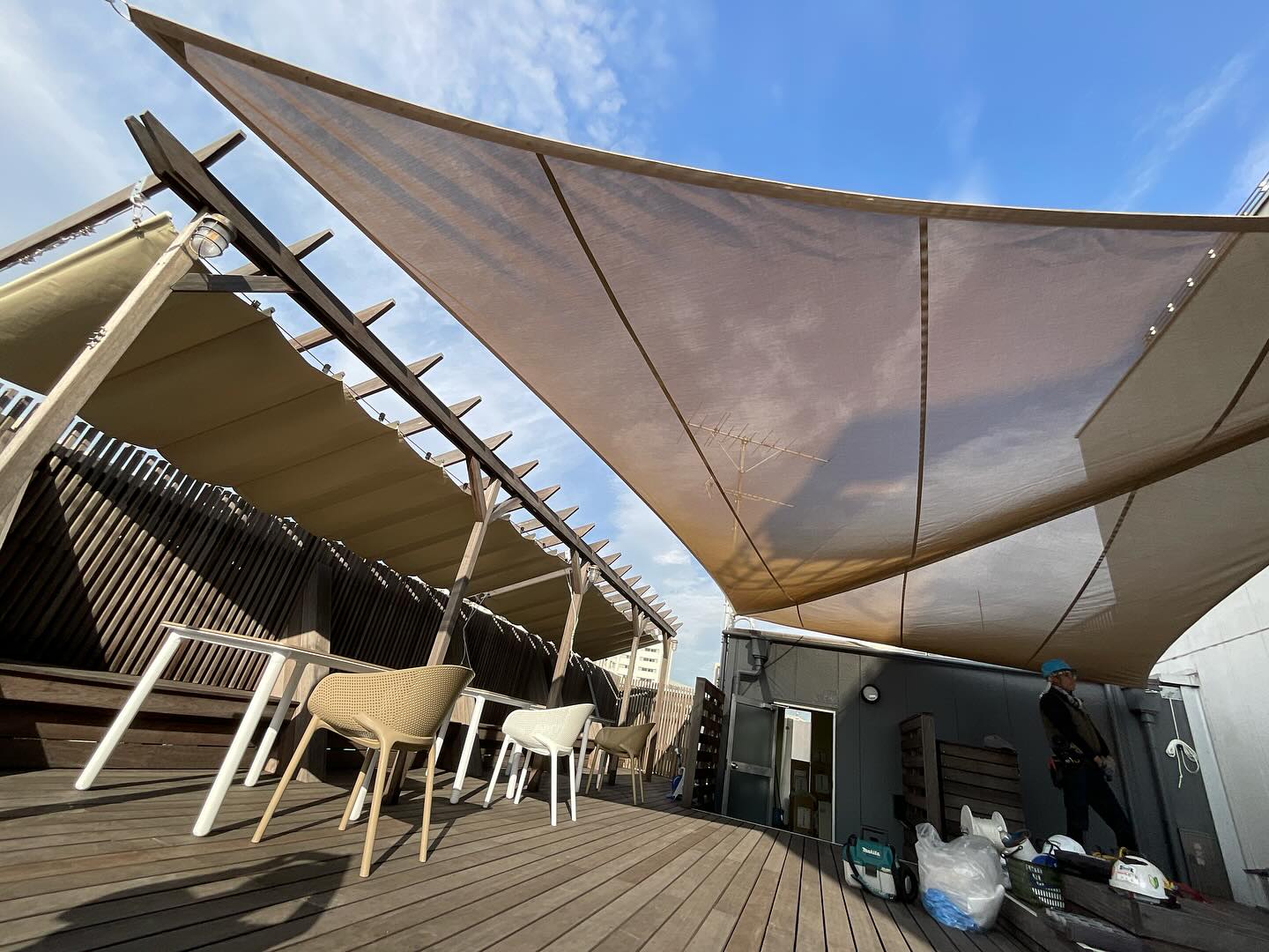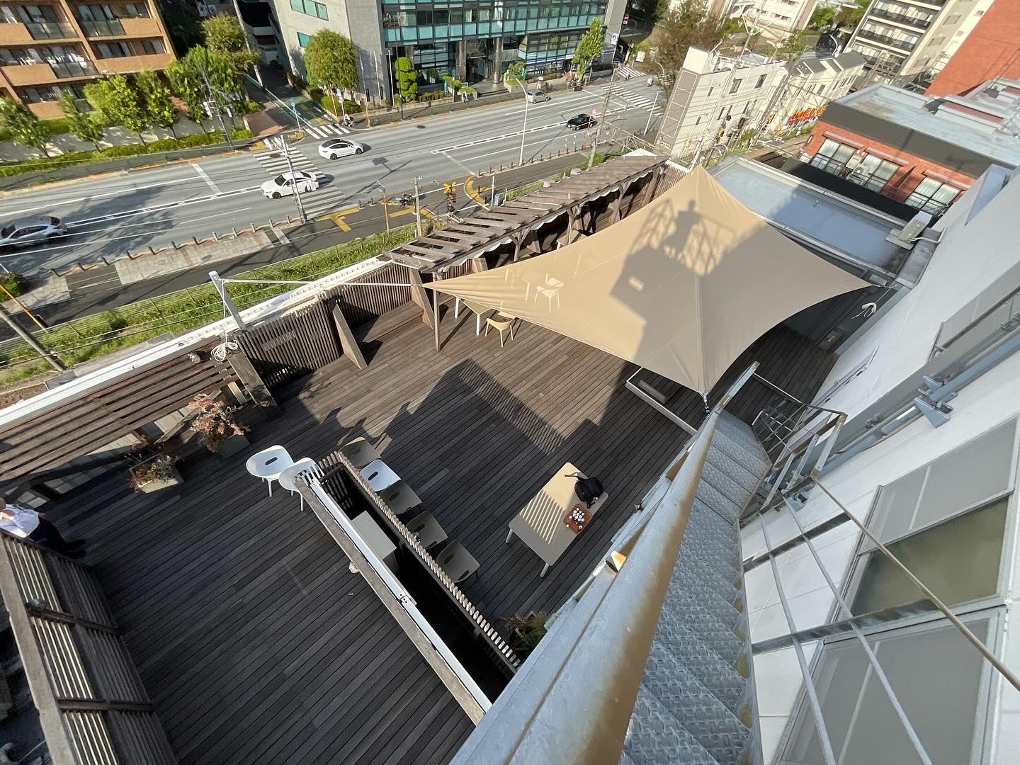 高田馬場のオフィスビル屋上に、サンシェード工事完了いたしました。