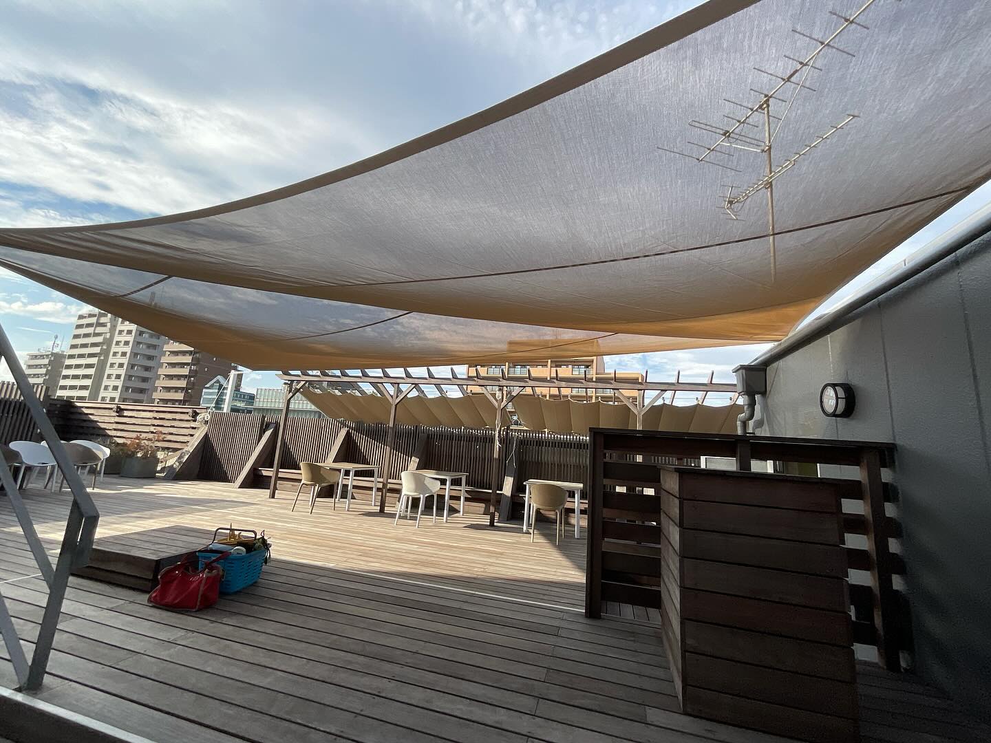 灼熱の屋上テラスに、サンシェードで涼しさを